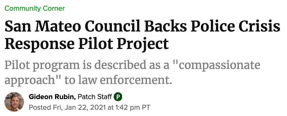A behavioral health clinician from San Mateo County Health will be embedded in our San Mateo Police Department in a new pilot program to improve our community policing and first response for those in behavioral health crisis through a co-response model linked to police dispatch as well as County Health resources and data.